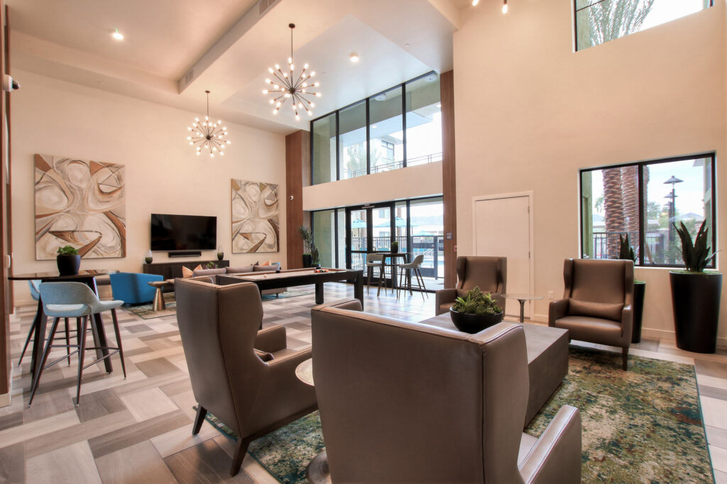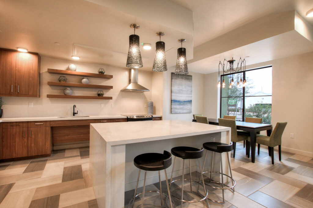 A mixed-use development with housing, retail, and community space.